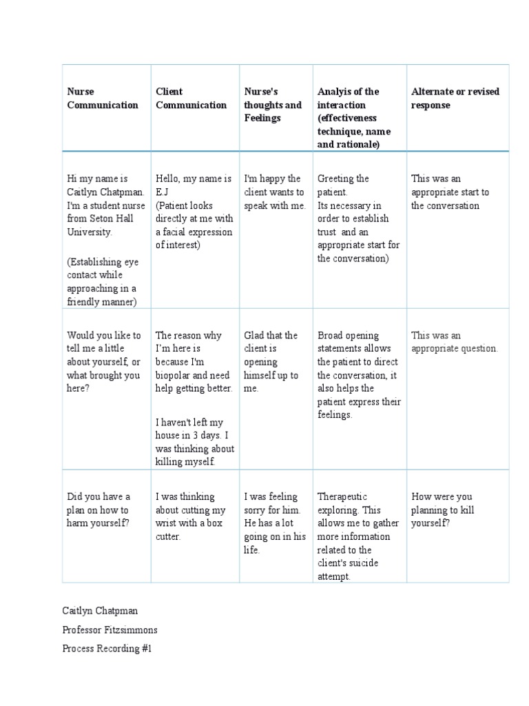 Process Recording Assignment Psychiatric Mental Health Nursing of Process Recording Definition Nursing process recording is the tool used for interaction with the clients with psychiatric illness. To evaluate the conduction of patient during admission, hospital stay and at the time of termination of hospital stay. process recording is a written account of verbal interactions between a nurse and patient used to improve communication. process recordings are used by nurses. Process Recording Definition Nursing.